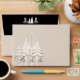 Our envelope features a charming arrangement of hand-drawn evergreen trees, each illustrated in a unique shape and adorned with intricate detailing. The festive phrase “Fa La La” is showcased in an elegant handwritten script, adding a playful yet sophisticated touch. Crafted in a warm cream beige exterior with a bold black envelope flap, this design creates a striking and contemporary contrast. Personalize the flap with your family name and return address for a truly custom look. For an added layer of luxury, the envelope interior is lined with our signature evergreen tree and floral motif, beautifully printed against a rich black background, perfectly coordinating with the rest of the Gilded Evergreen holiday collection.