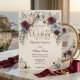 Announce your romantic garden ceremony with this sophisticated botanical suite, featuring a refined palette of dusty blue, blush pink, and burgundy roses.This design features a soft cream background framed by an arching border of dusty blue, burgundy red, and blush pink roses mixed with sage green eucalyptus foliage. The composition utilizes a formal typographical hierarchy, pairing elegant calligraphy script for names with a classic serif font for event details. A scannable square tech element is seamlessly incorporated into the traditional layout without disrupting the visual flow. This is a flat printed image with a printed watercolor painting effect, not actual raised material or hand-painted texture.