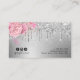 This beautiful lashes & brows business card design features faux silver dripping glitter metallic texture, flowers, eyelashes and elegant calligraphy font.
