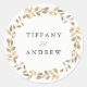 Elegant Modern Gold Leaf Wreath Engagement Party Classic Round Sticker