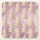 Elegant modern gold & pink Christmas tree pattern Square Paper Coaster