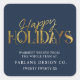 Modern minimalist business holiday sticker with elegant script calligraphy reading HAPPY HOLIDAYS in printed gold. Below is space for your custom message as well as additional space on the back over your corporate logo. This is the dark blue version.