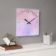 Gorgeous wall clock design with faux pink rose gold glitter marble and pastel purple texture.