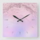 Elegant modern gradient rose gold glitter purple square wall clock
