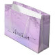 Gorgeous personalized paper shopping bag design faux violet glitter marble, colourful pastel purple texture and elegant calligraphy font. Personalize the product with a name or any other text.