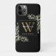 Elegant Modern Greenery Black Gold Monogram Case-Mate iPhone Case