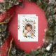 These beautiful holiday photo cards say "Happy Holidays" in modern text and feature two of your favourite personal photos. Elegant, modern watercolor greenery with leaves, red berries, and a gold foil centre frame decorate a simple white background. There is a room for a short personal message on the back.