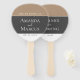 Elegant and modern grey and beige wedding hand fan. The design is in elegant dark grey, beige and white colours and modern script. Welcome and thank your wedding guests. Great as a wedding keepsake for you and your guests. Personalize all the text on the fan.