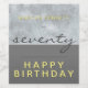 Elegant and Modern Grey Script Seventy 70th Birthday Wine label for a man who is celebrating his seventieth birthday. The design has dark and bright grey background texture and trendy typography and script in dark grey, white and yellow colours. Personalize the label with your name. Change the text Happy birthday if you want and make your own celebration wine labels.