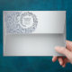 This envelope design radiates sophistication, featuring an ornate silver damask floral frame that gracefully encircles the centre. The swirling leaves, floral curves, and heart-like motifs create a refined ornamental border. The background softly blends into shades of light silver with a metallic sheen, adding depth and elegance. At the centre, the recipient’s name and address are highlighted in matching silver, standing out with clarity and charm. The shimmering silver palette gives this design a timeless and luxurious appeal, making it ideal for weddings, anniversaries, gala dinners, and upscale formal celebrations.
