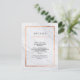 Wedding guest information cards in elegant rose gold and marble. Simple black text against a white marble background is fancy and formal, with the gold accents adding an extra chic touch.