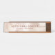 Stylish desk name plate design featuring faux copper rose gold marble texture and elegant font.