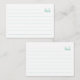Create your own personalized stationery ruled index note cards with elegant modern typography monogram in turquoise colour.