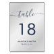 Minimalist, yet elegant navy blue and silver wedding table number card featuring a modern script font. Matching items available.