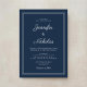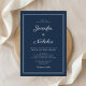 Elegant Modern Navy Blue Script Wedding Invitation.