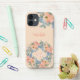Elegant Modern Peach Floral Wreath Monogram M iPhone Case