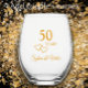 Elegant Modern Personalized Gold 50th Anniversary Stemless Wine Glass