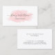 Modern business card design featuring a pink watercolor texture and elegant calligraphy font.