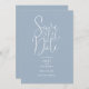 This dusty blue elegant script wedding save-the-date invitation can be personalized with all your special wedding day information and wedding website QR code. Designed by Thisisnotme©