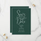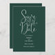 This emerald green elegant script wedding save-the-date invitation can be personalized with all your special wedding day information and wedding website QR code. Designed by Thisisnotme©