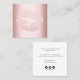 Pretty makeup business card design featuring faux rose gold glitter lips and texture.