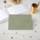 A modern typography for your wedding stationery: choose this simple and elegant wedding suite. Elegant and striking with a sage green and gold foil cover.