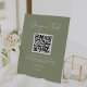Elegant & modern sage green Honeymoon fund QR code Pedestal Sign