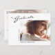 This modern elegant graduation announcement postcard, features design elements of modern text fused with elegant calligraphy script. The graduates horizontal photo is artfully placed on the front of the card while the back of the card offers an additional photo and personalized text spaces for information about the graduation and future journey. To see more items like this, visit my store here at "www.Zazzle.com/LakeViewCardCo". Thanks
