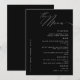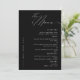 Need a black and white, classic and minimalist Wedding dinner menu card? Our design features modern script typography and enough space for your menu options.