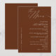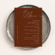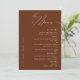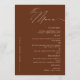 Need a terracotta classic and minimalist Wedding dinner menu card? Our design features modern script typography and enough space for your menu options.