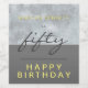 Elegant and Modern Script Fifty Grey 50th Birthday Wine label for a man who is celebrating his fiftieth birthday. The design has dark and bright grey background texture and trendy typography and script in dark grey, white and yellow colours. Personalize the label with your name. Change the text Happy birthday if you want and make your own celebration wine labels.