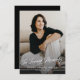 This beautiful memorial card features a full-frame vertical photo with modern calligraphy script and minimalist typography. The script on the front says "In Loving Memory". On the back there is another small square photo with space for a Celebration of Life invitation.