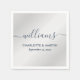 Personalized navy blue and silver wedding paper napkins with a modern script font. Easily personalize online with your wedding details. Matching items available to complement these minimalist, yet elegant navy blue and silver wedding paper napkins.