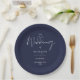 Elegant Modern Script Navy Blue Wedding Paper Plate