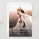 This elegant Wedding Invitation features a sweeping script calligraphy text with a modern sans serif font in black, with a photo overlay on the front