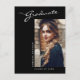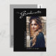 This modern elegant graduation announcement postcard, features design elements of modern text fused with elegant calligraphy script. The graduates horizontal photo is artfully placed on the front of the card while the back of the card offers personalized text spaces for information about the graduation and future journey. Backgrounds are black on the front and silver grey on the back or easily customize them to colours of your choice. To see more items like this, visit my store here at "www.Zazzle.com/LakeViewCardCo". Thanks