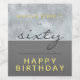 Elegant and Modern Script Sixty Grey 60th Birthday Wine label for a man who is celebrating his sixtieth birthday. The design has dark and bright grey background texture and trendy typography and script in dark grey, white and yellow colours. Personalize the label with your name. Change the text Happy birthday if you want and make your own celebration wine labels.