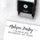 Simple and stylish self-inking stamp with a modern minimalist typography design with your custom name in hand lettered script calligraphy with pretty swirls (make sure to keep spaces on side of names intact for swirls to remain). Personalize with your name and address and this will become a pretty, easy way to self address your stationery in classic, timeless black and white!