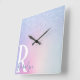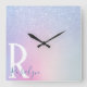 Elegant modern stylish ombre blue glitter rainbow square wall clock