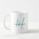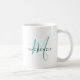 Elegant Modern Teal Script Monogram Coffee Mug.  An elegant teal script monogram combined with a clean black san-serif font makes for a contemporary look.