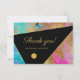 Classy luxury business corporate thank you flat note card in vibrant pink, blue, and black colour palette with abstract brushstrokes and faux gold modern contemporary fully editable typography script. ++++++++++ Personalize it with your text and signature on the front and back! +++++++++++++++++ You can upload your logo by replacing the gold circle on the front.