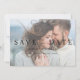 Send your engagement announcements in style with this elegant white 2 photo faux vellum overlay wedding Save the Date, featuring modern hand lettered script typography paired with elegant serif fonts as a white overlay, over your favorite horizontal (landscape orientation) engagement photo. The back of the invitation features a second favorite engagement photo in the same orientation. DESIGNER'S NOTE: This design is available in two colors: black overlay type, here, and another one in our store exactly like this in white type, so you can see which might look best over your photo. CREATOR'S NOTE: The "vellum overlay" on this product is a digital effect." Copyright Anastasia Surridge for Anastasia Designs, all rights reserved.