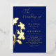 This elegant design has text and flowers with metallic foil of your choice, the gold matching perfectly with the deep dark blue.