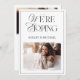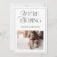 This design shows off 2 of your favourite engagement photos. The front of the post wedding reception invitation features 'We're Eloping' in a gorgeous, modern mixed typography typeface, followed by your names, and your engagement photo below, which are easily personalized with this template design.