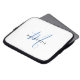 Elegant Modern White Blue Script Monogram laptop sleeve. An elegant blue script monogram combined with a clean black san-serif font makes for a contemporary look.