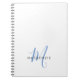 Elegant Modern White Blue Script Monogram notebook. An elegant blue script monogram combined with a clean black san-serif font makes for a contemporary look.