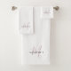 Elegant Modern White Blush Pink Script Monogram Bath Towel Set