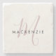 Elegant Modern White Blush Pink Script Monogram Stone Coaster