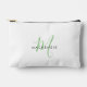 Elegant Modern White Green Script Monogram Accessory Pouch