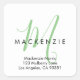 Elegant Modern White Green Script Monogram Return Address Label. An elegant green script monogram combined with a clean black san-serif font makes for a contemporary look. Note: For some initials, the descender (lower part) may overlap the address, but shouldn't interfere with legibility.